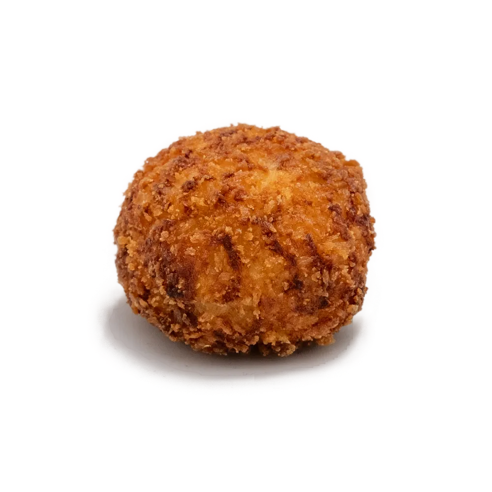 Un homenatge al pernil en forma de croqueta. Pernil 100% ibèric de gla, curat amb sal marina i infusionat en el nostre propi greix per concentrar-ne tot el sabor. Barrejat amb una beixamel suau i sedosa, ofereix un interior cremós i ple d’aroma.
